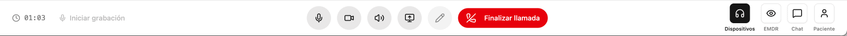 Herramientas, configuración y control a tu lado. Para tu paciente, solo una videollamada limpia.